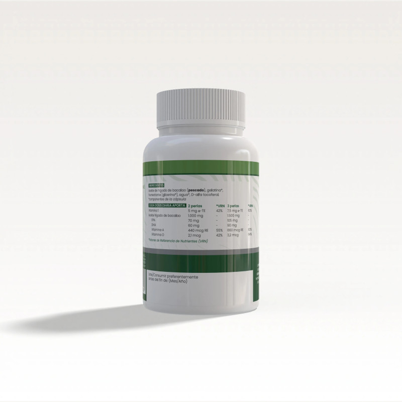 Complemento alimenticio a base de aceite de hígado de bacalao y vitaminas