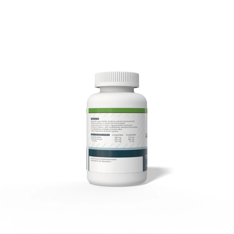 Alcachofa micronizada (Cynara scolymus L), extracto de alcachofa (cynara scolymus L.) fructooligosacáridos (Achicoria Cichoriumintybus, raiz), agente de carga: fosfato cálcico, maltodextrina y antiaglomerante: silice y estearato de magnesio.