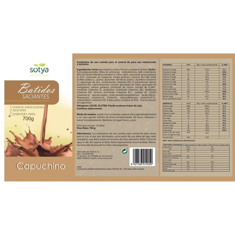 Batido saciante de capuccino 700g Sotya