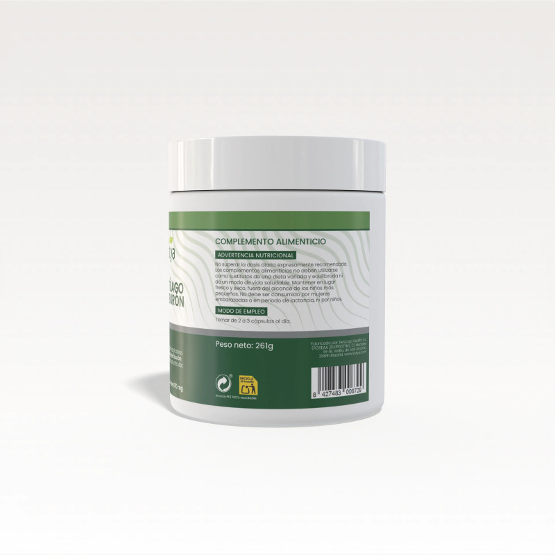 Envase con 300 cápsulas de 870 mg. Peso neto: 261 g (aproximadamente 100 días de uso).
