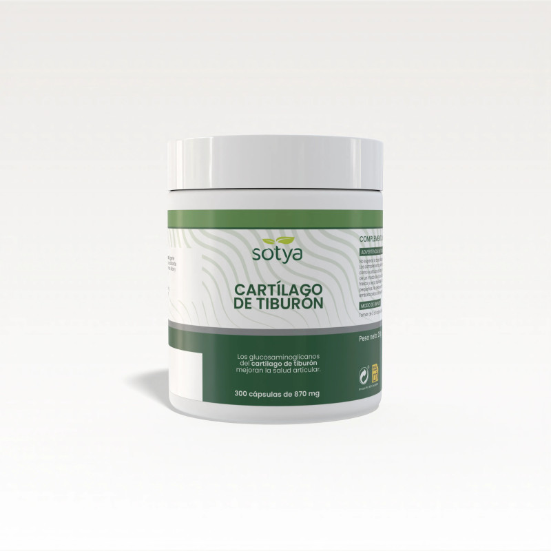 El Cartílago de Tiburón de Sotya es un complemento alimenticio formulado para el cuidado de las articulaciones. Sus glucosaminoglicanos contribuyen a mantener la salud del cartílago, el tejido esencial que amortigua las articulaciones y facilita la movilidad, ayudando a mantener un estilo de vida activo y saludable.