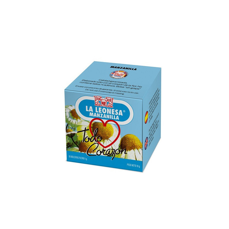 Infusión de flor de manzanilla natural. La tisana de manzanilla La Leonesa contiene solo el corazón de la flor, sin hojas, ni tallos. Las flores de esta planta medicinal contiene aceite esencial y flavonoides que aportan los principios activos beneficiosos, con propiedades digestivas y antiespasmódicas.