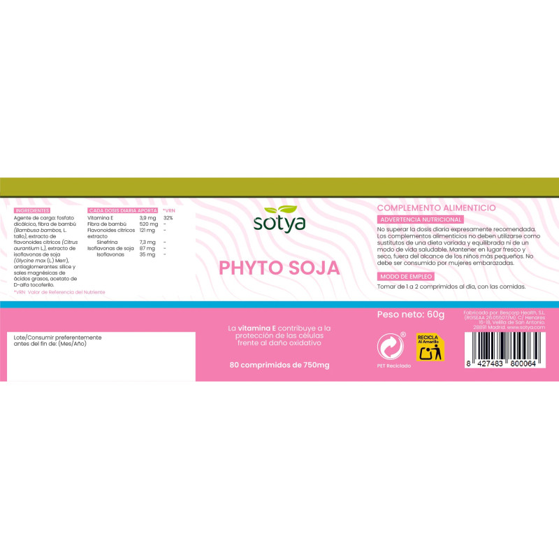 Phyto soja isoflavonas 750mg 80 comprimidos Sotya